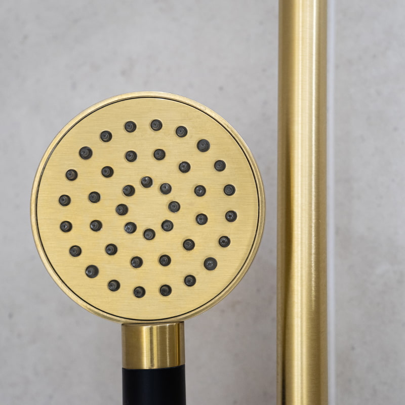 - Zet je badkamer niet té vol met accessoires. Een paar goedgekozen items zijn genoeg. In onze badkamer zijn dat bijvoorbeeld een badmat van HK Living, handdoekhaakjes in geborsteld messing van Ferm Living en lekkere verzorgingsproducten van À la.